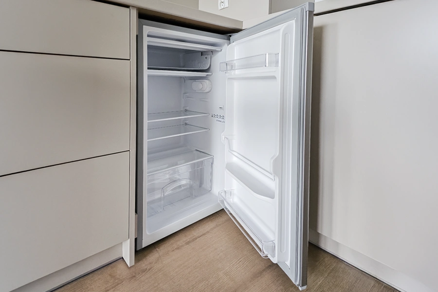 Do dyspozycji Gości oddajemy nowoczesną lodówkę w zabudowie. Pomieści zarówno lokalne przysmaki, jak i codzienne zakupy.